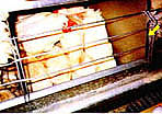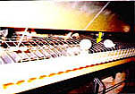 - 每層雞籠之底部前面,即蛋快要滾到輸蛋皮帶之地方,有一條鐵絲阻擋一下雞蛋的滾動,減緩其衝力,據說可以減少雞蛋的破損。
