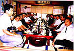 是夜宿木更津市觀月莊大飯店。晚餐舉行中日養雞家交流會。日方盛情招待。蘇經洲團長在主人致歡迎詞後,即以流利的日語致謝詞。原先黃德發先生原本要替團長翻譯的,沒想到團長的日語比他想像中還要流利,令他刮目相看。也沒有想到他是博學多才深藏不露的人。據蘇經洲先生告訴筆者,他訂閱有日文養雞刊物,每期必看而且巨細無遺。真是有深度的『養雞專業人』。