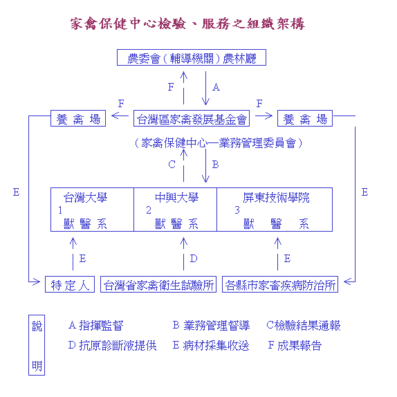( 或人員 ) 均礙於情面,勉強受檢,有時或因本身業務繁忙,時效上不能滿足業者需要,是故有些業者往往將血清遠送國外請求檢驗,造成人力、物力的浪費及時效的失控,對業界實為一大損失。台灣區家禽發展基金會鑑於國內養禽界之需要,早有成立「家禽保健中心」之議,其後獲得農委會、農林廳等農政主管單位之支持,始於八十一年十月中開始籌設「家禽保健中心」,將來並以成立「財團法人家禽保健基金會」舖路或「財團法人家禽保健中心」為目標。