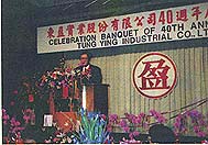 本省畜牧界元老東盈實業股份有限公司,於四月卅日假台北市凱悅飯店舉辦創立四十週年紀念晚會,台籍政治耆宿,也是台灣電視公司董事長陳重光,新聞局長胡志強,農委會池雙慶處長、本會王令一理事長,台北市動物用藥品公會林陽期理事長皆到會致詞,並表示恭賀之意。據悉由於汪國恩擔任董事長的東盈公司於民日 42 年 5 月創立,以纖維及大五金貿易為主。