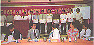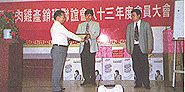 【本刊訊】本會桃園縣肉雞產銷聯誼會於83年5月5日召開83年度會員大會。會議由會長洪元曉主持,並邀請本會理事長黃次洋先生及縣政府長官……等蒞會指導。會中特別由張炎爐課長代桃園縣縣長致頒給今年度得到模範農民的鄭鶴松先生及為產銷班班員犧牲奉獻的全體十三班長各一面獎牌。