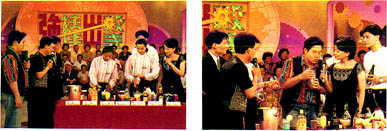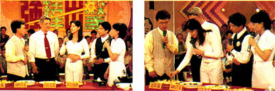 商請遠東國際飯店調酒師上節目,以其專業精湛的手法調製色香味俱全的雞蛋飲料向觀眾做介紹,另邀請藝人劉爾金與楊大偉現場示範雞蛋飲料,讓現場來賓品嚐比較,除極富銀幕吸引力及效( 笑 ) 果外,也有助於雞蛋食用之推廣。( 圖一、圖二 )