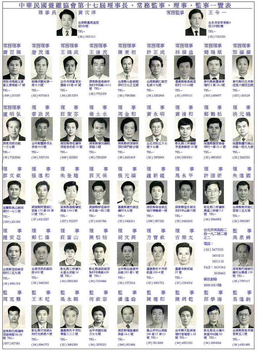 中華民國養雞協會第十七屆理事長、常務監事、理事、監事一覽表