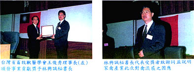 台灣省畜牧獸醫學會成立五十週年暨八十六年度會員大會於元月五日假中興大學農環大樓國際會議廳舉行,會議由王俊秀理事長主持。此次會議藉全國畜牧獸醫界幾乎會員集合之便,也舉辦了學術論文發表會,家畜防疫計畫檢討會及畜產品品嚐酒會。大會除例行作決算、工作報告外,並頒發四個獎項給畜牧界之工作者:教學獎–張甘楠、學術獎–張天傑、事業獎–林興誠、服務貢獻獎–李淑慧。林秘書長在代表受獎者致詞時表示:協會的工作是團隊精神發揮的具體表現,因此他很感謝協會體同仁之支持,他的獲獎是由於全體同仁努力,才使他有機會上台頒獎。另提到香港傳出家禽流行性感冒後我家禽產業立即由家禽業的幾個主要幹部當機立斷研擬出因應大方針:由農政單位統一發言,產官界之發言則根據農政單位之發言為基礎,不另提其它言論。如此做法主要是讓消費者能接收到 〝 真正的知 〞,而不希望產、官、學一人一把號各吹各的調,使得媒體資訊混淆而隨意報導,其結果不但消費者喪失了真正知的權利,產業界受打擊也是無法避免。